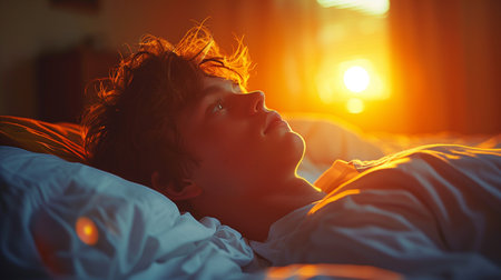Awakening gently as dawn breaks, the person embraces the new day with refreshed vigor