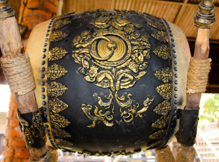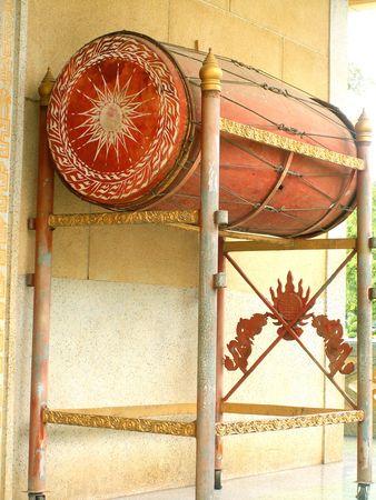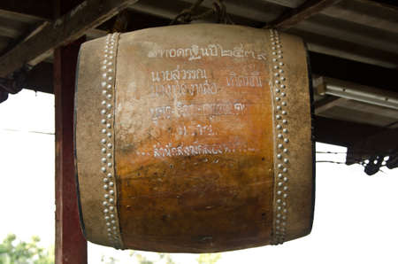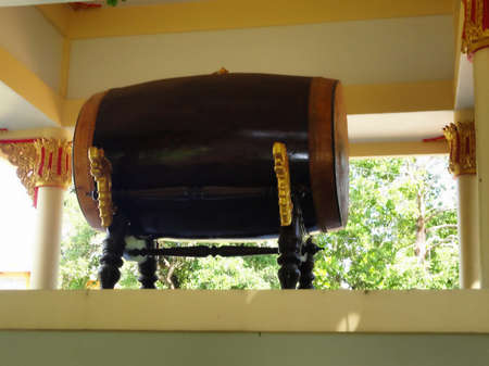 Big ancient drum in Buddhist temple, Temple of Thai.