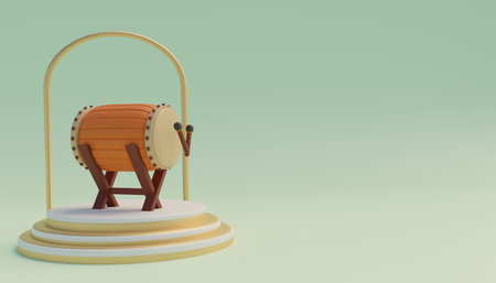 3d rendering of a wooden drum on podium in pastel color