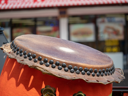 Close up of a Japanese taiko drum instrument before performance