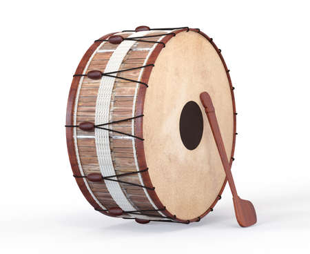 Vintage teared drum. Old drum made from animal skin is wear and tear.