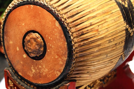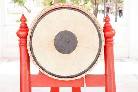 The ancient drum in the temple, closeup of photo with soft focus