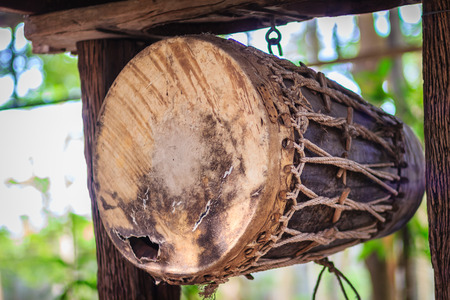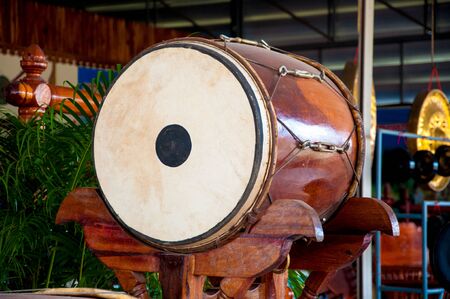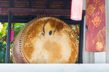 big drum musical instrument antique in Buddhist temple at North of Thailand