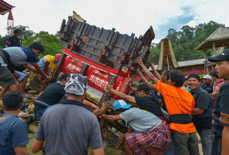 Tana Toraja, Sulawesi, Indonesia - August 15: Funeral ceremony on August 15, 2016 in Tana Toraja, Sulawesi, Indonesia. In Tana Toraja the funeral ritual is The most elaborate and expensive even