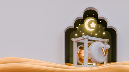 Ramadan Kareem and idul fitri image. Ramadan Kareem 3d illustration with copy space.Traditional religious symbol