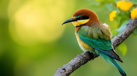 Colorful Bee-Eater Bird Resting on a Branch in Natural Habitat