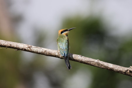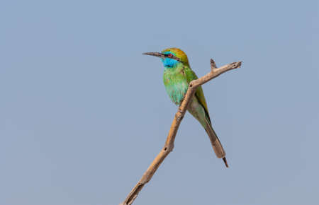 Green Bee-Eater bird perched on a branch waiting for insects to be eaten