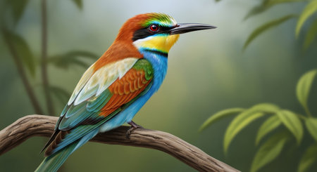 Bee eater bird perched on a branch, european bee eater