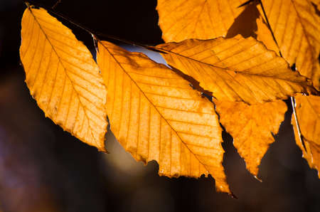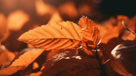 Golden autumn leaves bathed in sunlight. A close-up shot of the vibrant colors and texture of nature in fall