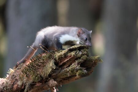 White brasted marten jumping on wood - Martes foina