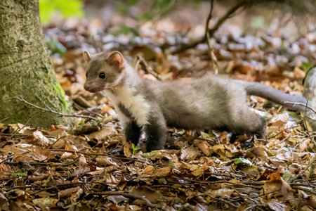 The meadow-nimble marten roams through the undergrowth in search of food