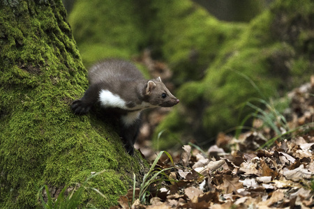 Marten in its natural environment in the Czech forest