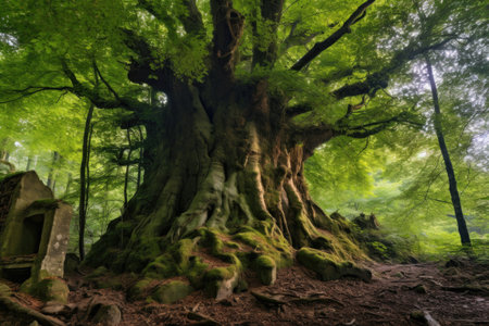 majestic ancient tree in the heart of the forest, created with generative ai