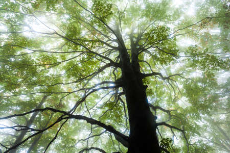 Foggy forrest old beech moody shot.