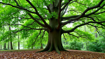 Majestic beech tree with dense canopy and graceful branches casting shadows