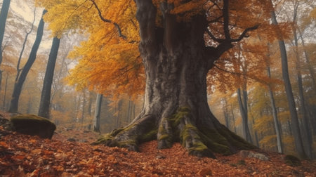 Generative AI : Oldgrowth stand of beech trees Fagus sylvatica in the autumnal forest