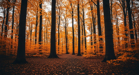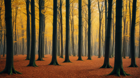 Autumnal forest. Beautiful fall forest. Autumn trees with yellow leaves