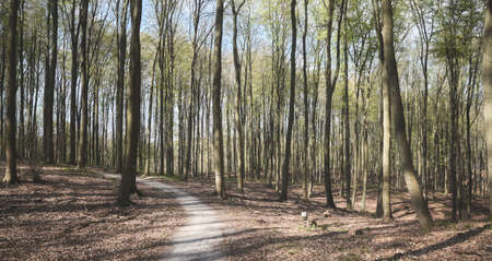 Spring in the woods of Franconia, Germany. Lovely light green on a warm morning at sunrise. Trees and Foliage