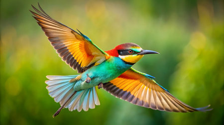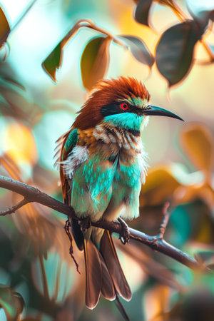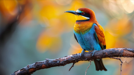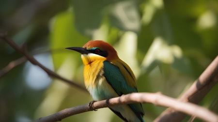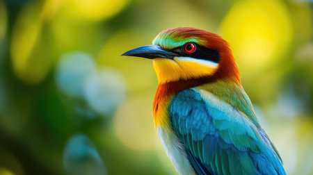 Vibrant bee-eater bird with bright plumage perched in nature
