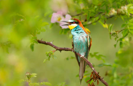 Close up of a calling Bee-eater in summer, Bulgaria.