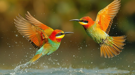 beautiful colorful birds with insects in their beak