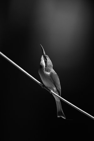 Mono little bee-eater looks up from wire