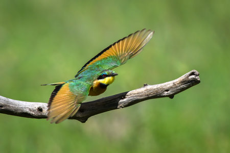 Little bee-eater takes off from curved twig