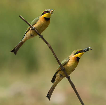 2 Little-Bee Eaters (Merops pusillus) both holding insects