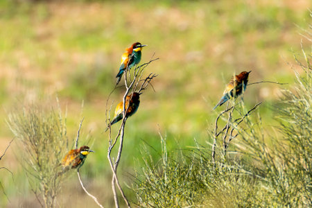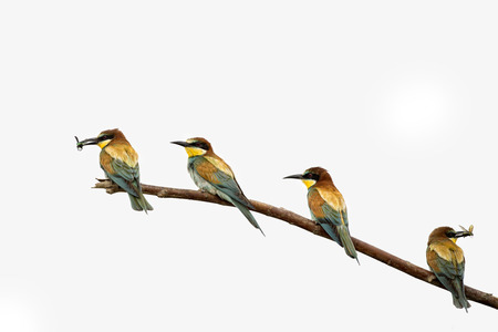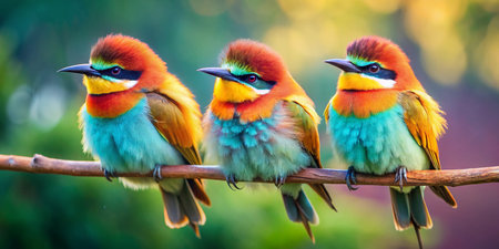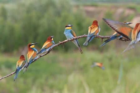 Group of bee-eaters (Merops apiaster) sitting on a branch