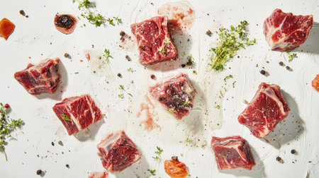 High-quality raw beef cuts showcase rich red color and marbling. Perfect for culinary creations or gourmet dishes. Fresh, flavorful, and versatile ingredient.