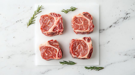 Fresh juicy beef cuts displayed with beautiful marbling and herbs, capturing the essence of quality meat. Ideal for culinary projects and food photography.