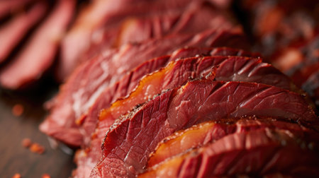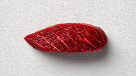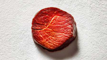 A vibrant red meat slice displayed on a textured background, highlighting its marbling and juicy appeal, ideal for food photography and culinary inspiration.