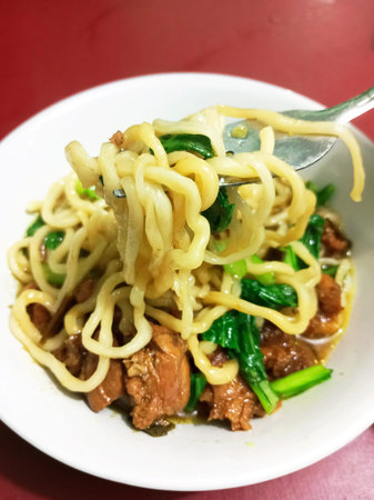 Yummy mie ayam with thick savory brown sauce
