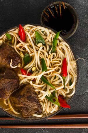 Asian beef noodle soup with chilli