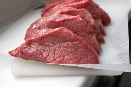 Sliced raw beef. Sliced ​​meat for cooking, fresh meat for grilling, yakiniku, sukiyaki and shabu.