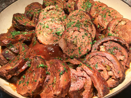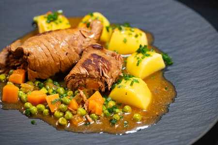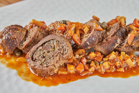 Veal rolls stuffed in white wine. French gourmet cuisine