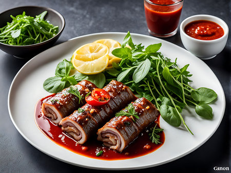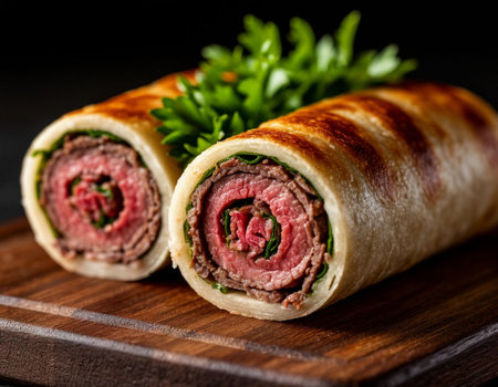 Meat rolls. Generated by AI