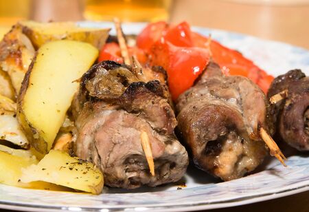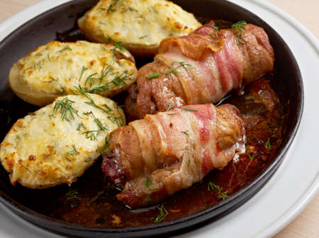 Rolls of meat with vegetables and baked potatoes