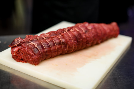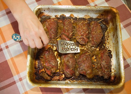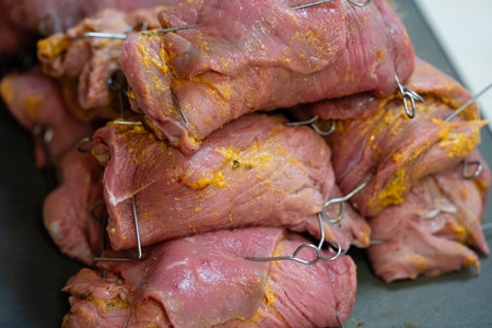 One of the stages of preparation of stuffed beef. See series