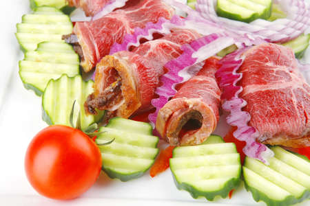 Beef rolls isolated on the white background