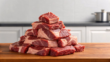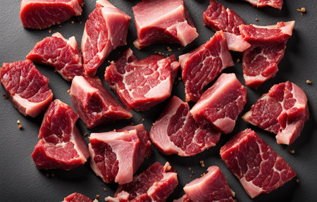 A close up of a pile of raw meat on the table, AI