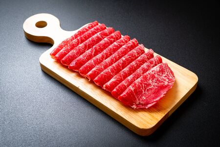 fresh beef raw sliced with marbled texture served for Sukiyaki and Shabu or Yakiniku