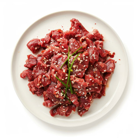 Discover vibrant raw beef cuts displayed in a fresh and pristine arrangement. Ideal for culinary use, recipes, or gourmet presentations showcasing quality ingredients.