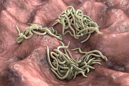 Parasitic worms, 3D illustration. Ascaris lumbricoides, Enterobius vermicularis and other round worms