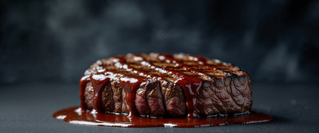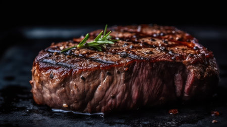 AI Generated. Grilled steak with melted barbeque sauce on a black and blurry background
