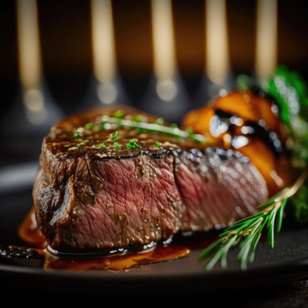 AI Generated. Elegant Steak Dish with High Contrast Presentation