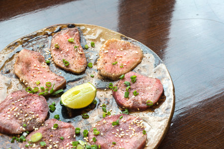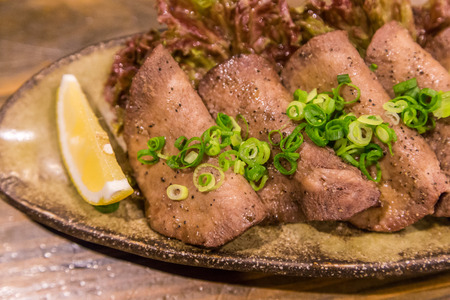 Barbecue sliced beef tongue marinated in pepper, onion, sesame oil and soy sauce.