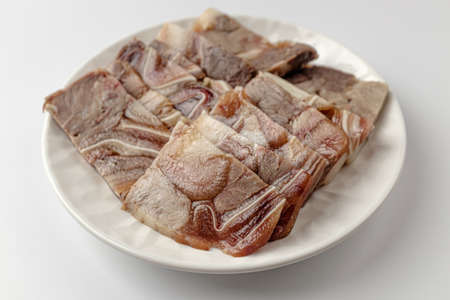 dishes made with boiled pork. A dish made by pressing pork. soft and chewy meat
