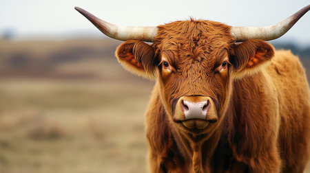 A cow's horns on a green field, high quality, high resolution