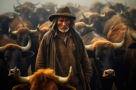 Rural life thrives as a dedicated farmer tends to his cattle. Concept Farming, Cattle, Rural Life, Agriculture, Livestock